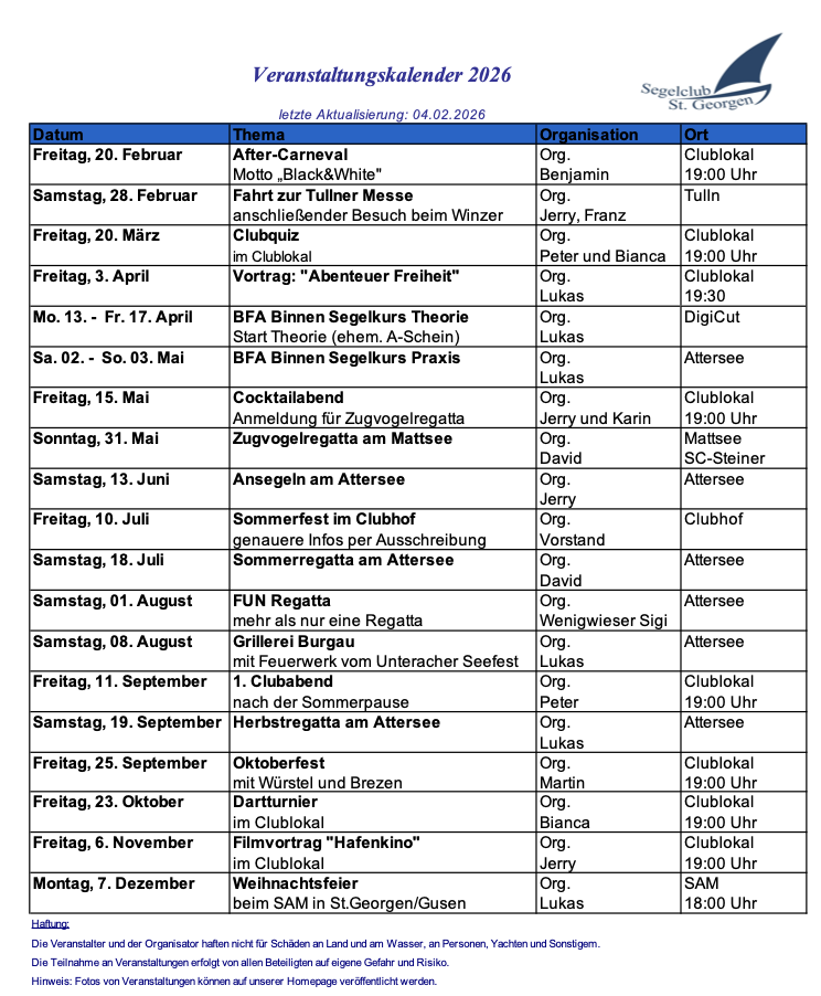 Veranstaltungskalender 2026